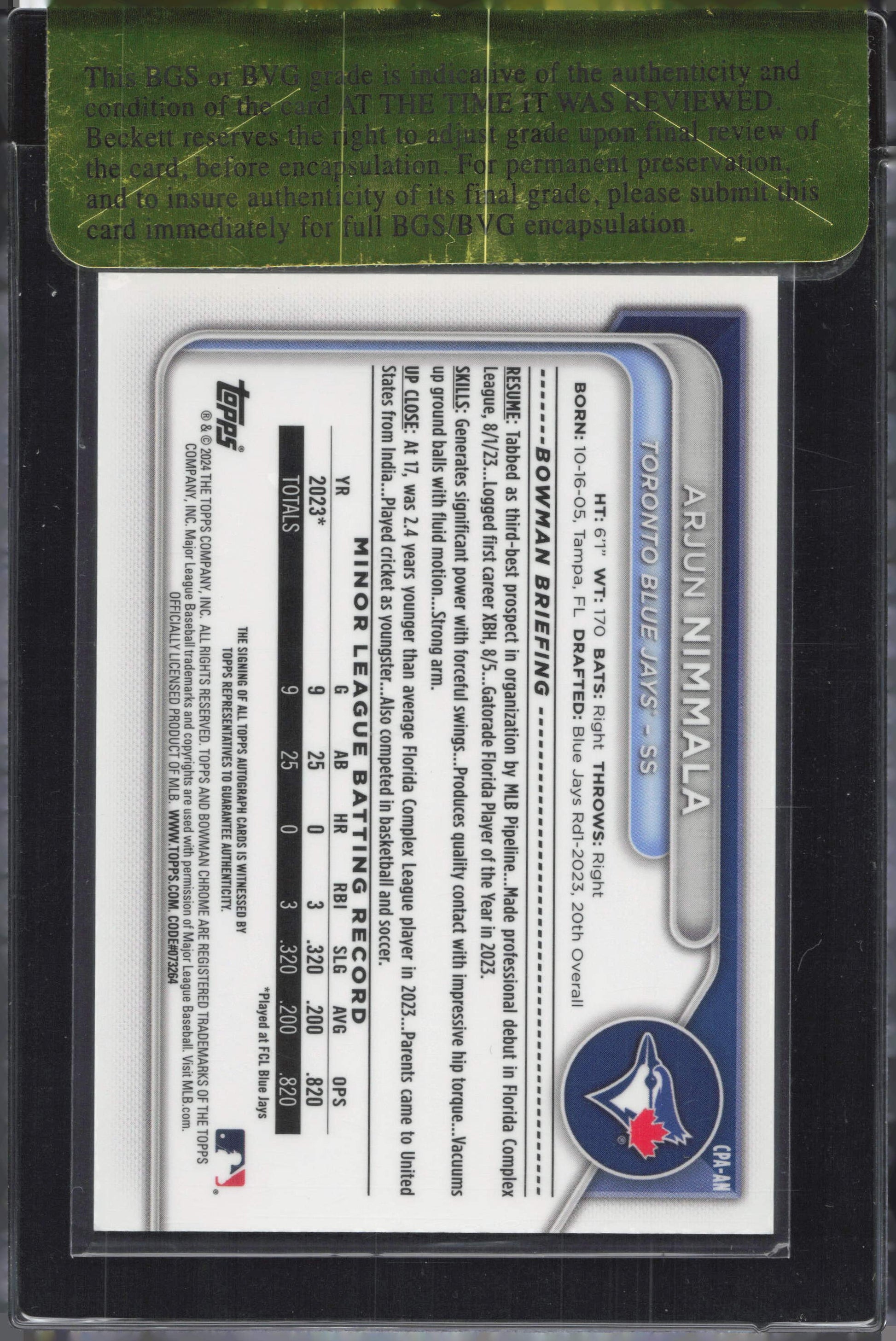 2024 Bowman Arjun Nimmala Chrome Auto Blue Refractor 1st /150 Beckett RCR 9.5/10